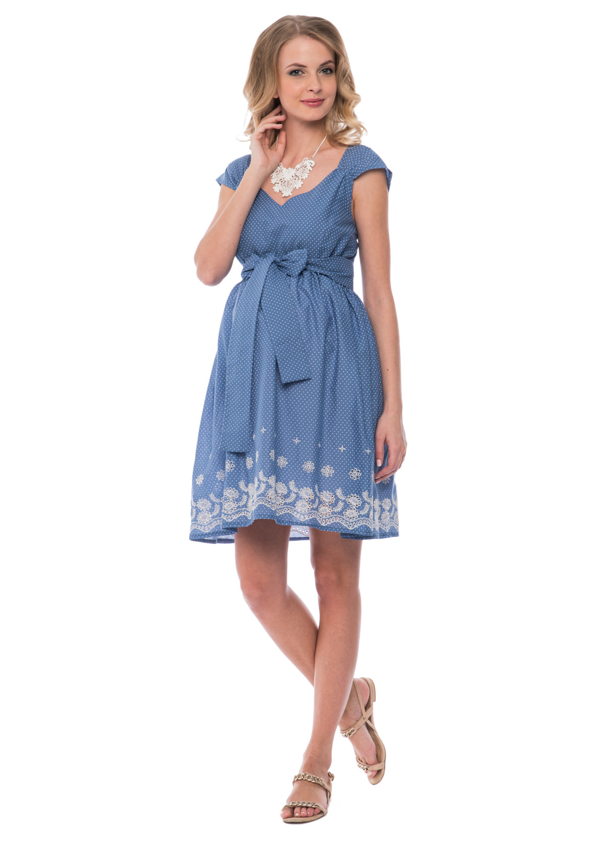 Кокетливое платье из легкой плательной ткани – хлопок-шитье. Идеально подойдет для ношения в период беременности.